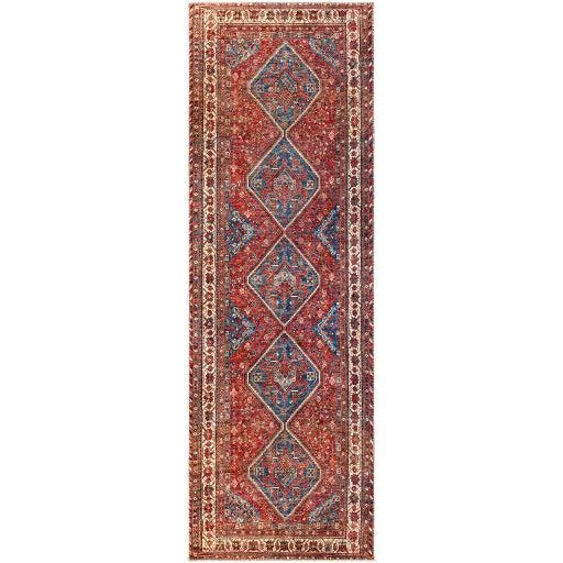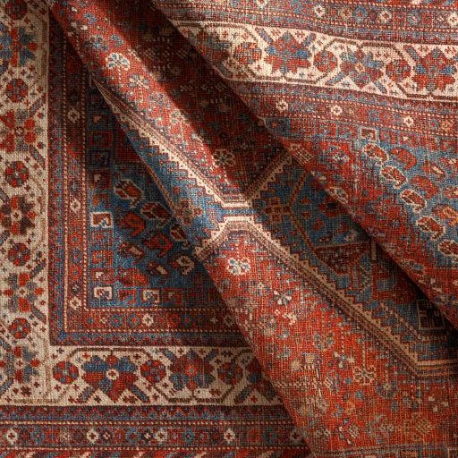 - Colors: Dark Blue, Burnt Orange, Mustard, Brown, Light Beige