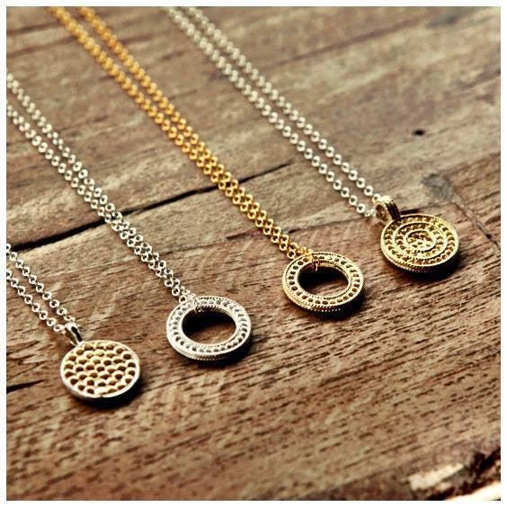 Wire-rimmed divided disk necklace with 16″ to 18″ adjustable silver chain. Handmade in Bali.