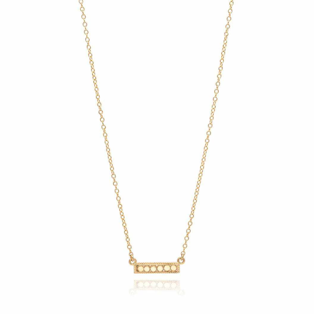 Gold plated garnet pavé bar stacking necklace on 16-18″ adjustable gold chain. Handmade in Bali.