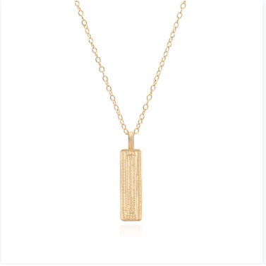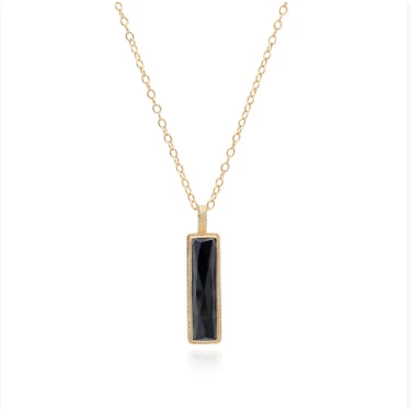 Hematite Bar Pendant Necklace 30″ in Gold. Handmade in Bali.