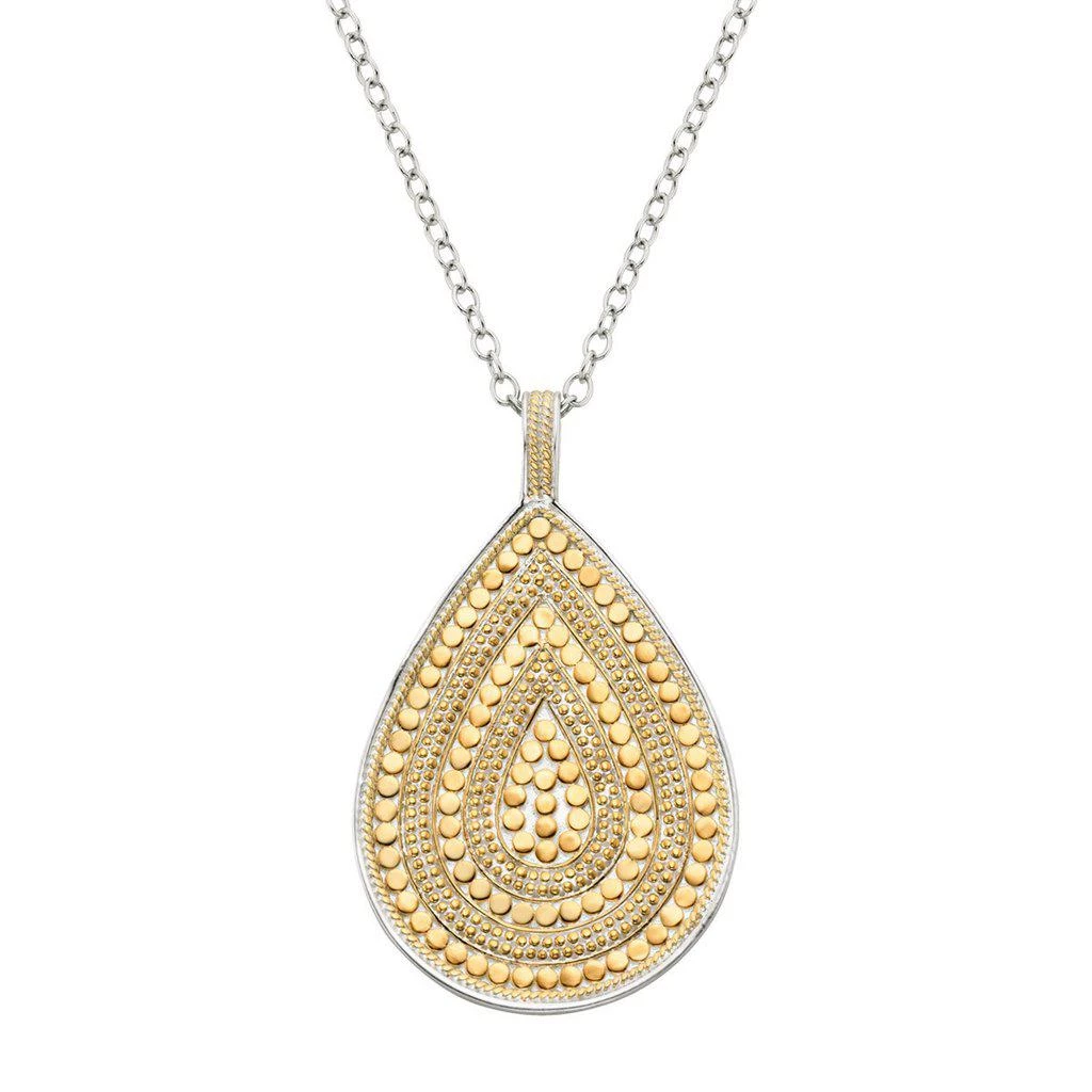 Gold plated and sterling silver reversible teardrop pendant necklace with smooth silver rim and silver chain. Handmade in Bali.