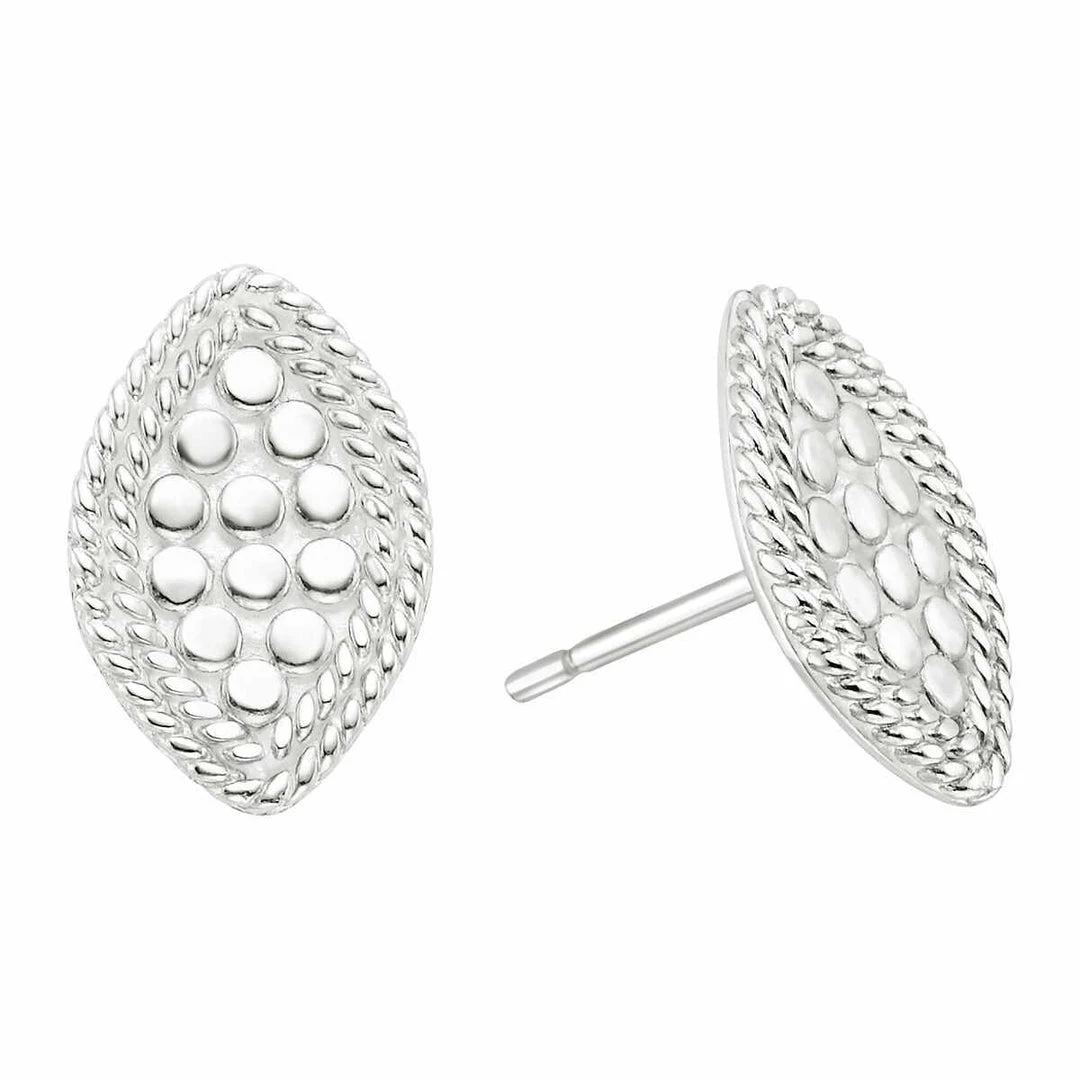 Sterling silver, marquise stud earrings on a sterling silver post. Handmade in Bali.