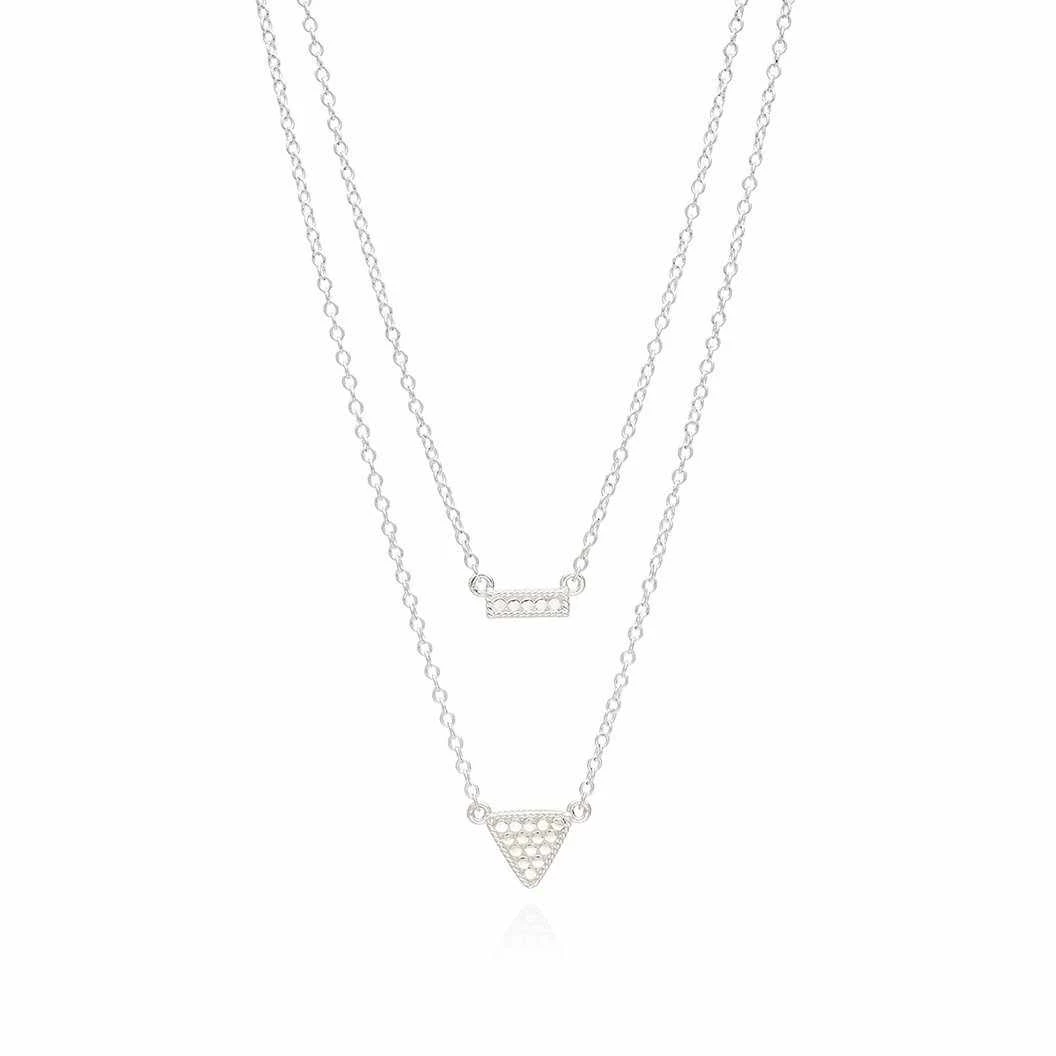 Gold-plated reversible petite bar & triangle double necklace on a 16-18″ adjustable sterling silver chain. Handmade in Bali.