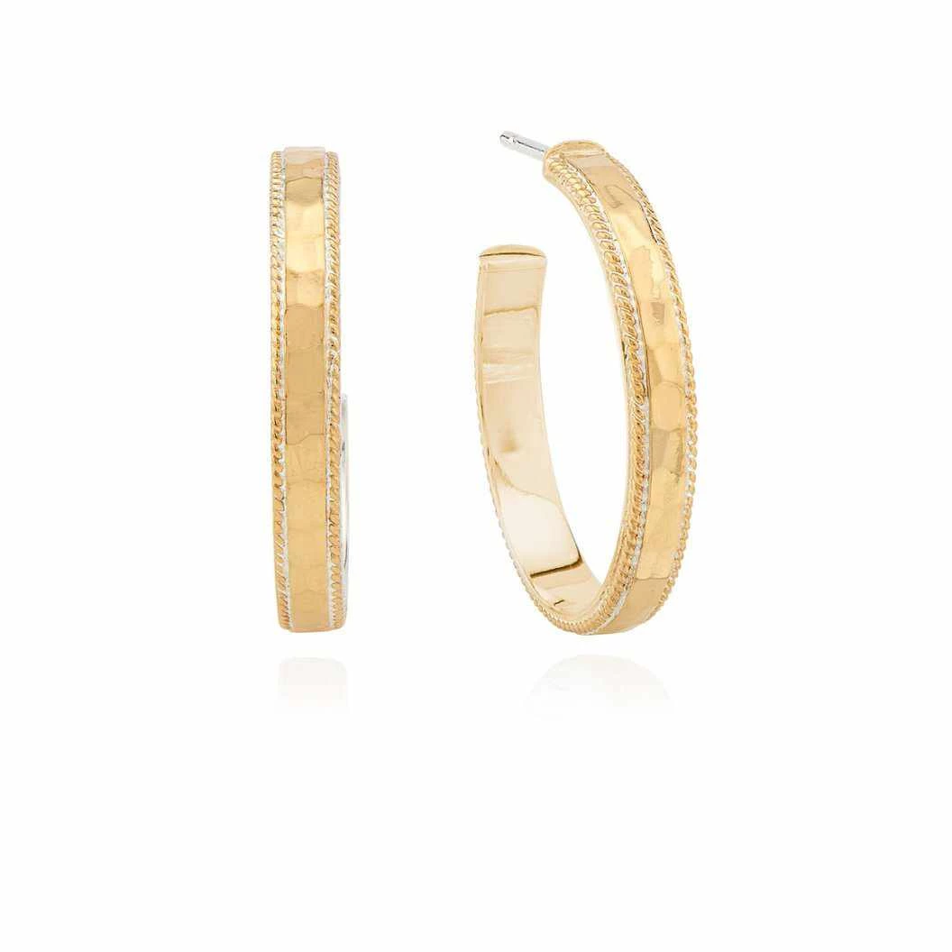 Gold-plated small hammered hoop earrings. Handmade in Bali.