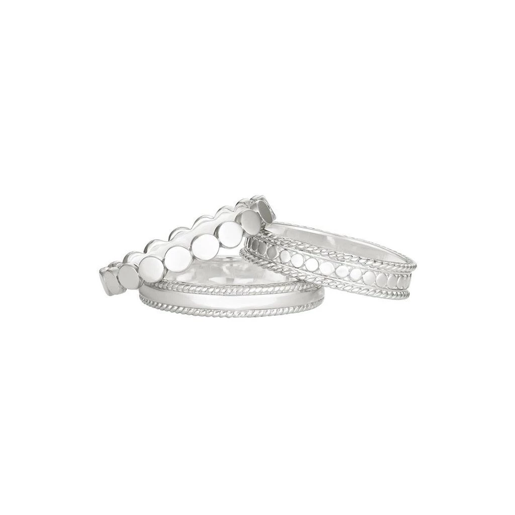 Set of 3. Sterling silver beaded metal ring, metal band ring, and Anna Beck classic band ring. Handmade in Bali.