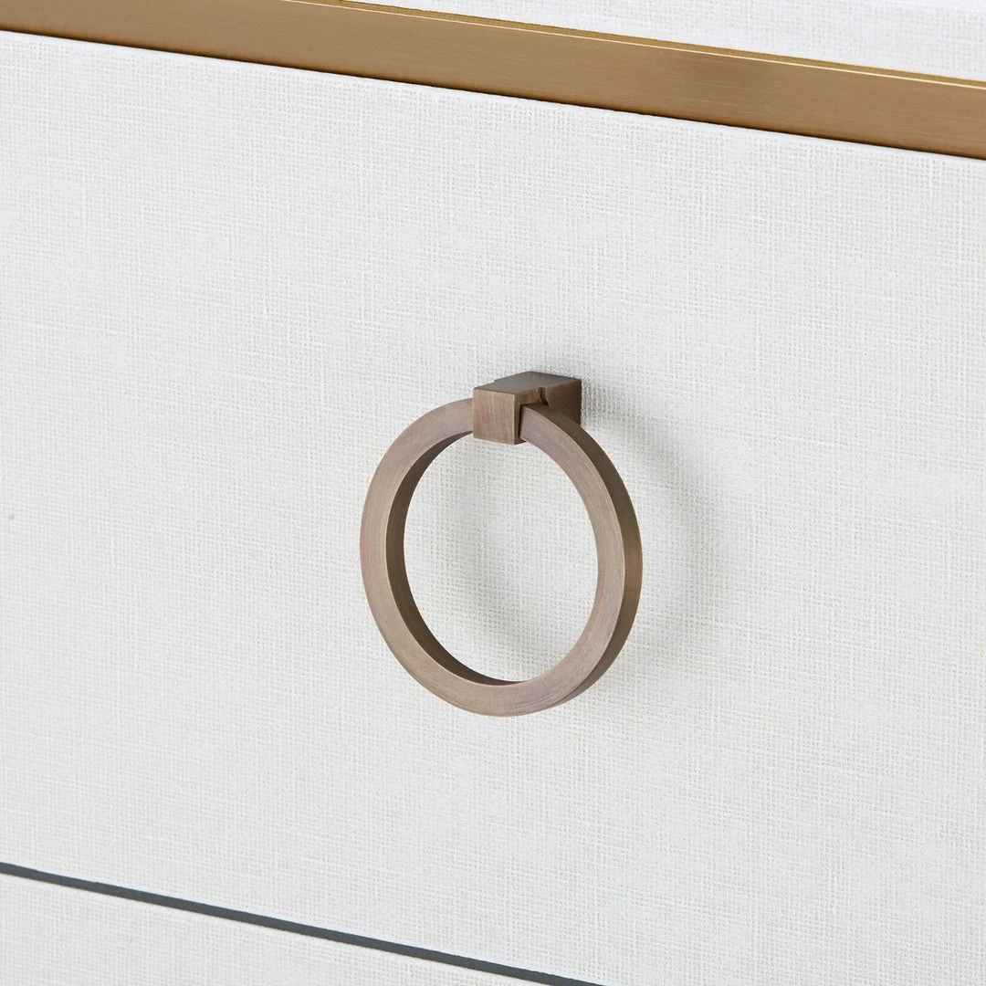 The Ansel Collection combines practical function with an understated sophistication, making these pieces delightfully unexpected anchors to any room. The small base creates a sense of lightness and the hand-applied lacquered linen gives each piece an elegant finish. The beveled brass-inlaid front evokes a sense of fine art to the detailed construction and design.