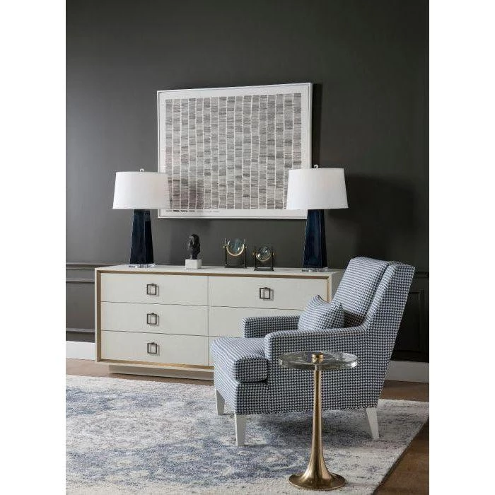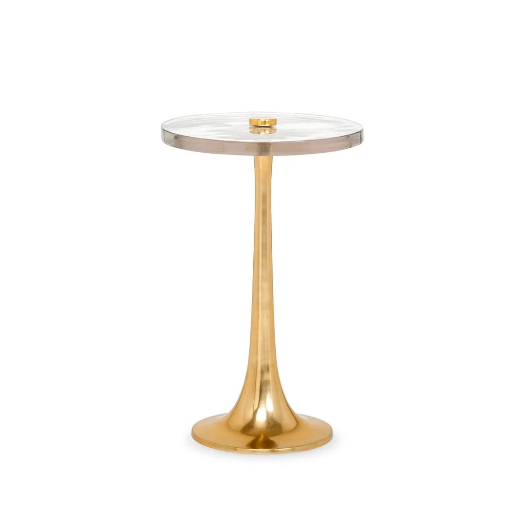 Although the Antonia side table looks very sleek and contemporary, it’s completely hand made and boasts a high level of craftsmanship. The process starts with a sand cast solid brass base which our artisans polish to a glittering shine. Next, the thick glass top is hand cast, polished, and attached. By blending old-world craftsmanship with modern aesthetics, our designers have created a very unique piece which slips effortlessly into any decorating scheme.