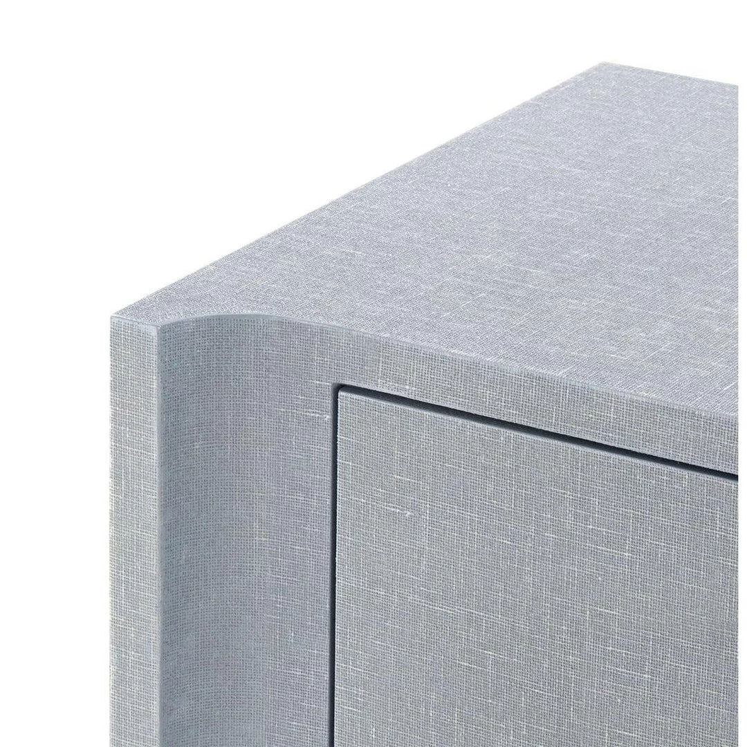- Washed Lacquered Linen, Veneer Drawer Interior With European Hinges, 2 Adjustable Shelves, Back Features Holes For Cable Access, Custom Pull Options