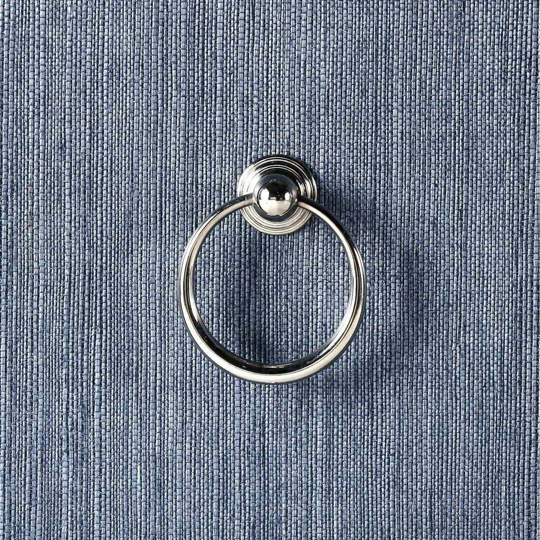 - Lacquered Grasscloth, Stained Interior with Soft Closing Glides, Polished Nickel Finish Ring Pull