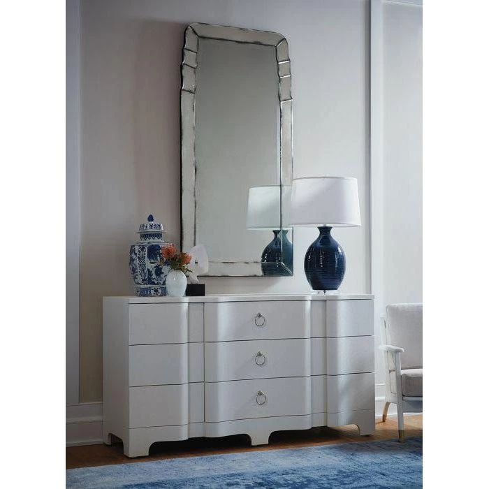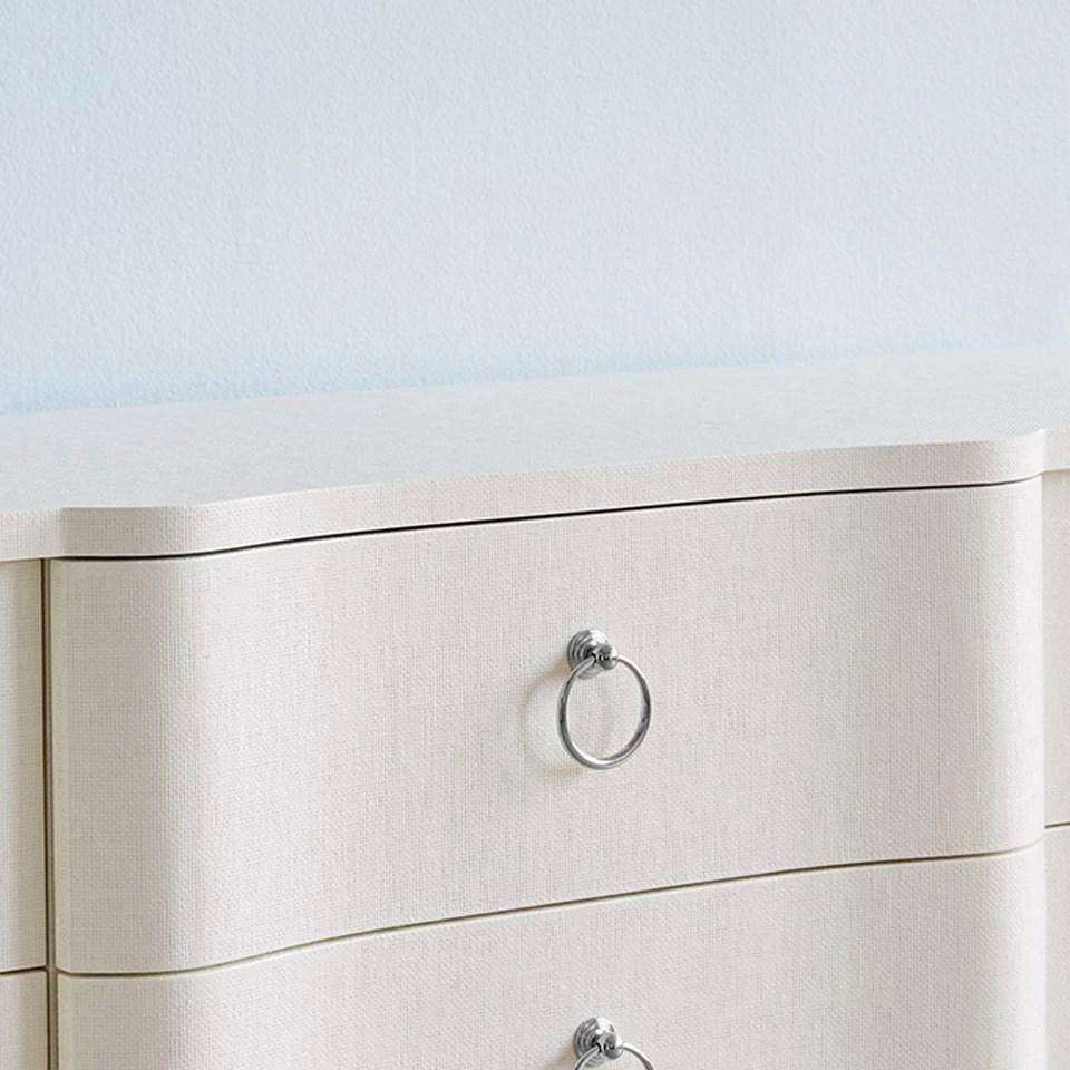 The Bardot Collection is a curvy, Art Deco-inspired design with a serpentine-front profile that imparts a sense of movement and fluidity. The lacquered grass cloth has been expertly applied by our skilled artisans so that it flows seamlessly over each cresting drawer front and around each corner. This piece appeals to those who want polished, decorated rooms.