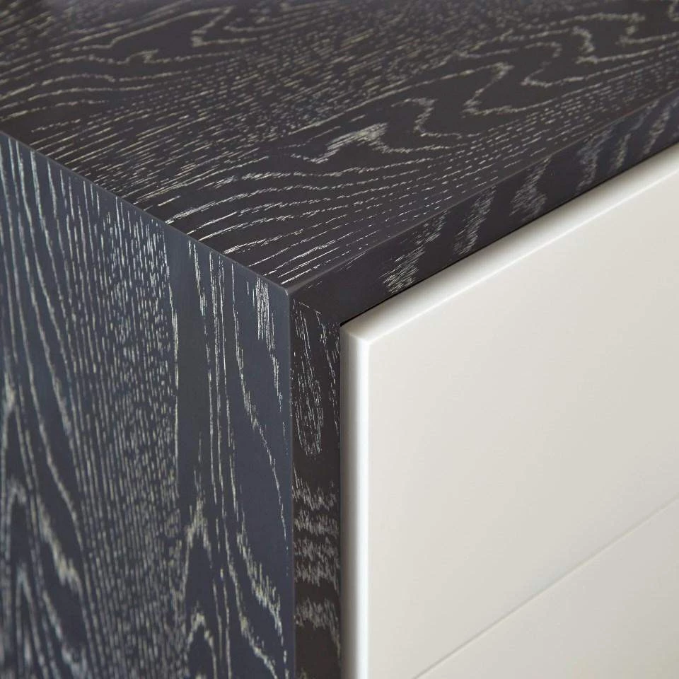 - Cerused Oak and Veneers, Stained Interior with Full Extension Glides, Chrome Finish Ring Pull.