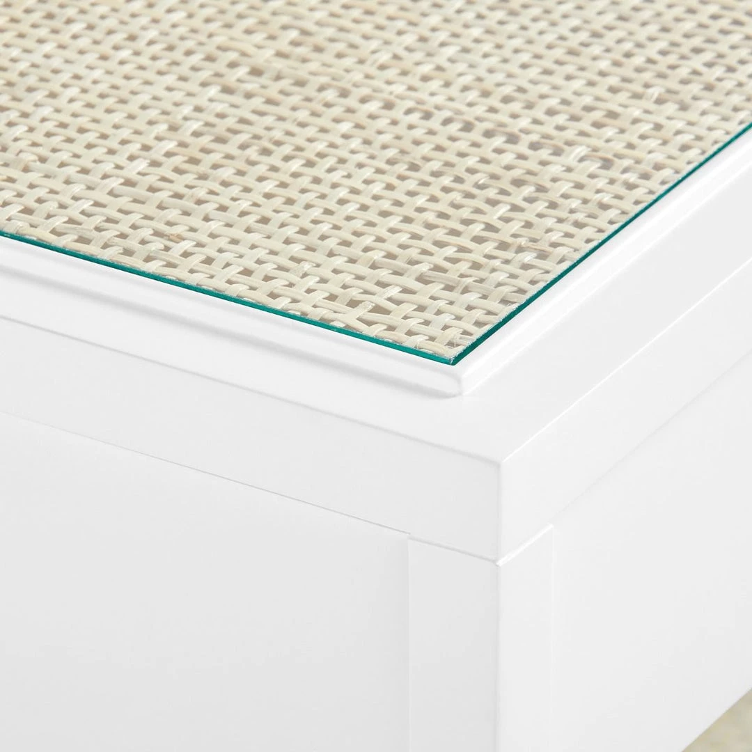 - Lacquer with Bleached Cane and Clear Glass Inset
