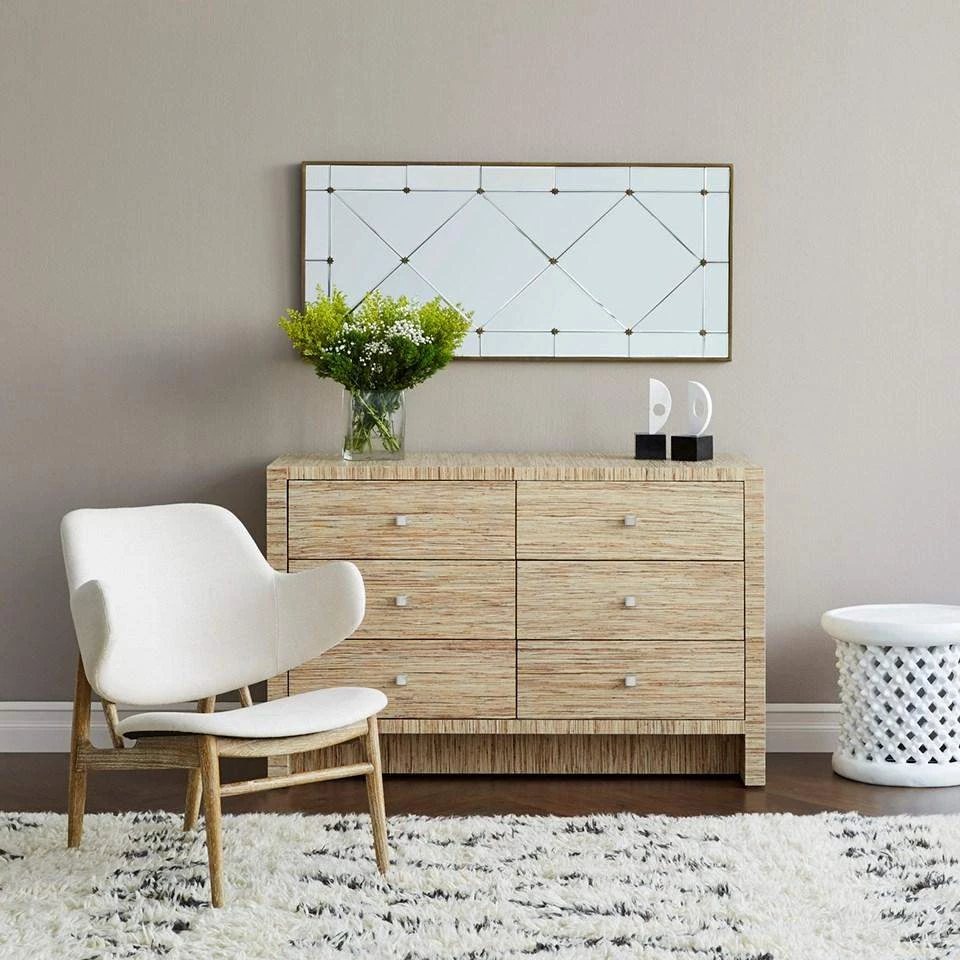 : Limed Cape-Lilac Mahogany, Linen Upholstered Cushion.