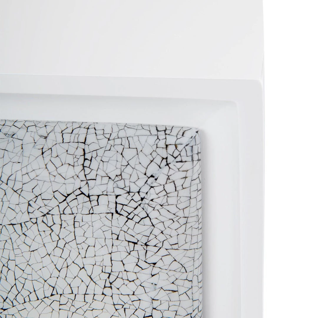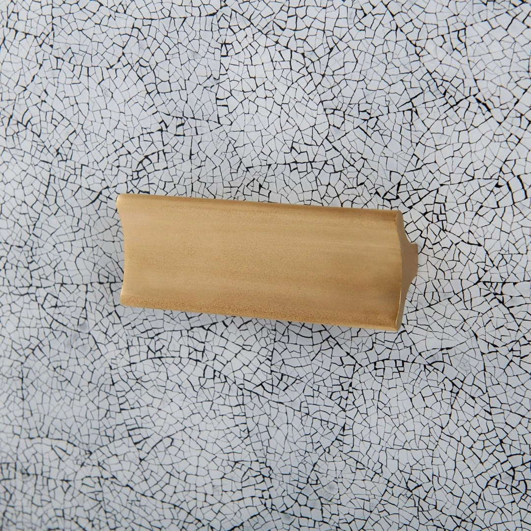 Unmistakably glamorous, the Elisa eggshell 1-drawer side table is a showstopper. The collection features rounded drawer fronts covered in pattern eggshell, and large brushed brass handles seem to hover above the angular lines of the side table’s body. There is nothing subtle about the Elisa collection. The eggshell finish on the drawers is created by an artisan using an old-world technique in which he lays, by hand, tiny pieces of eggshell into a unique pattern over a linen foundation. Each piece of the eggshell is meticulously adhered, fitting in like a puzzle piece. The artisan then covers the design with myriad layers of hand-painted lacquer to achieve a smooth finish. The result is a usable piece of artwork.