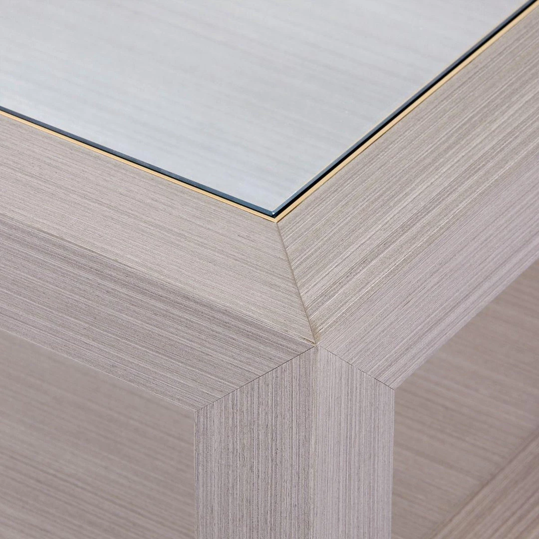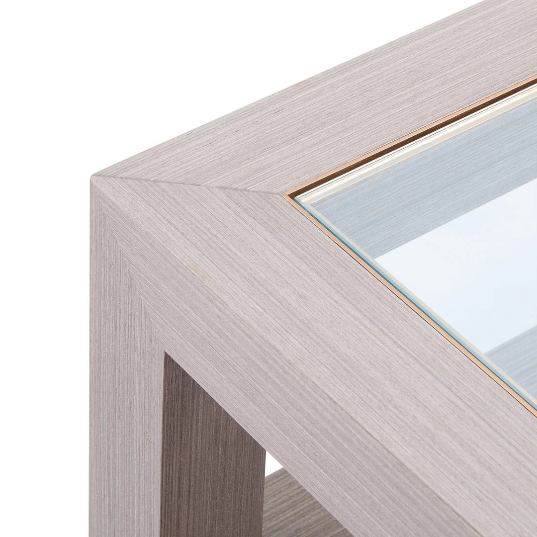 With champagne-colored finishes and a floating glass top, the Gavin Large Square Coffee Table in Taupe Gray is our designers’ answer to the need for a collection that compliments the perennially popular Morris and Blake Collections. Because our innovative blanched oak finish and taupe gray colorways have been so popular, the design team wanted to expand that design idea into coffee and side tables with the same tailored appeal. The result is tailored and masculine, but not rustic, with an innate refinement and modern structure. If you’re looking for that perfect piece that is slightly dressy but not over the top or frilly, the Gavin Collection is for you. Accented with glass and a recessed base, the Gavin Large Square Coffee Table is a standout for your next bedroom, living room, or study. Strategically place coffee table books under the glass top for a peek-a-boo effect.