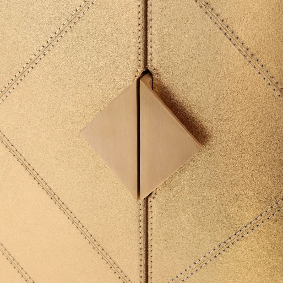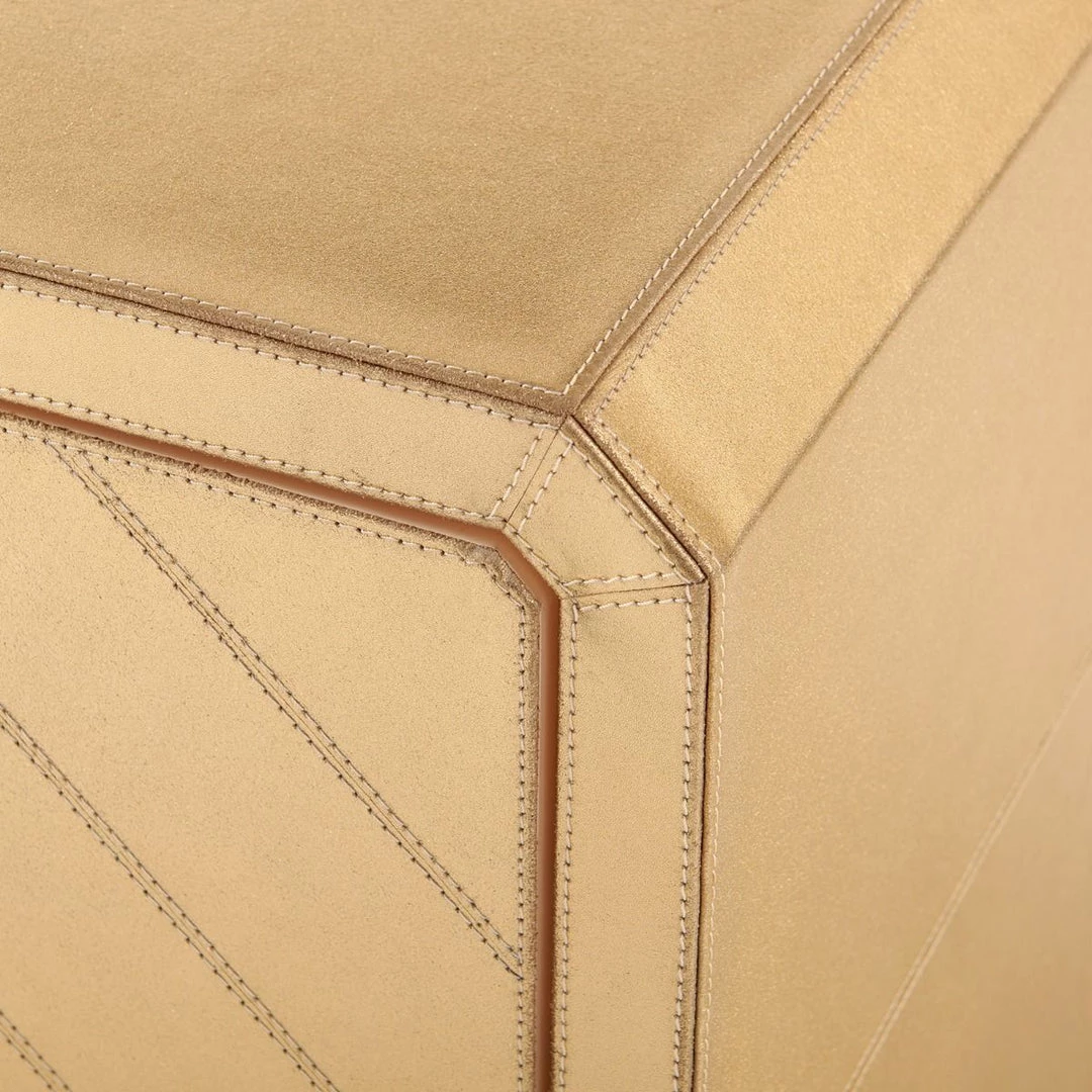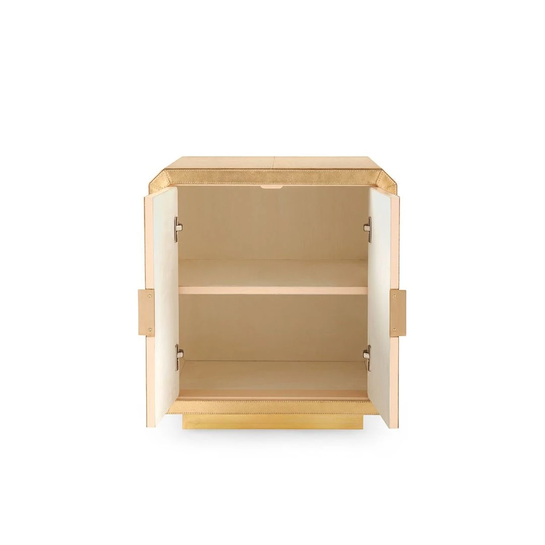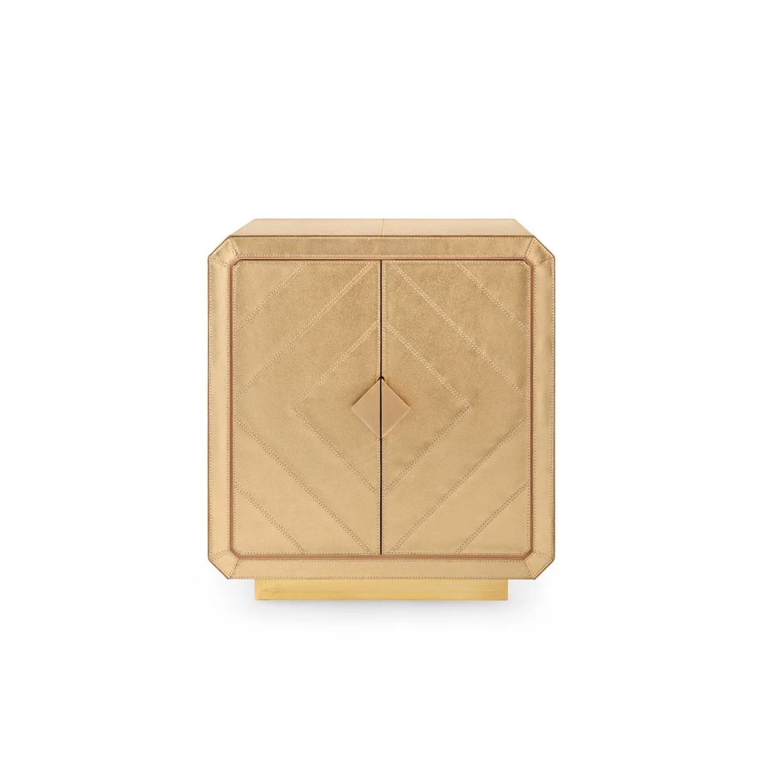 The Giselle Cabinet is luxury defined. Outfitted in lush leather with a golden sheen that speaks to its jewel box shape, the Giselle emits rich radiance along with an Art Deco aesthetic thanks to the geometric seams of its facade. Two doors finished with custom antique brass pulls open to reveal a fixed shelf and two storage sections, perfect for hiding away anything from toys and board games to glassware—turning the Giselle into a home bar. It’s versatile, glamorous, and certainly worth showing off in any room.