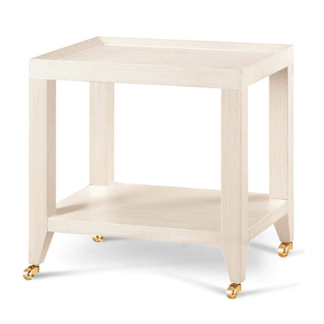 : Lacquered Grasscloth, 1 Fixed Shelf, Brass Castors.