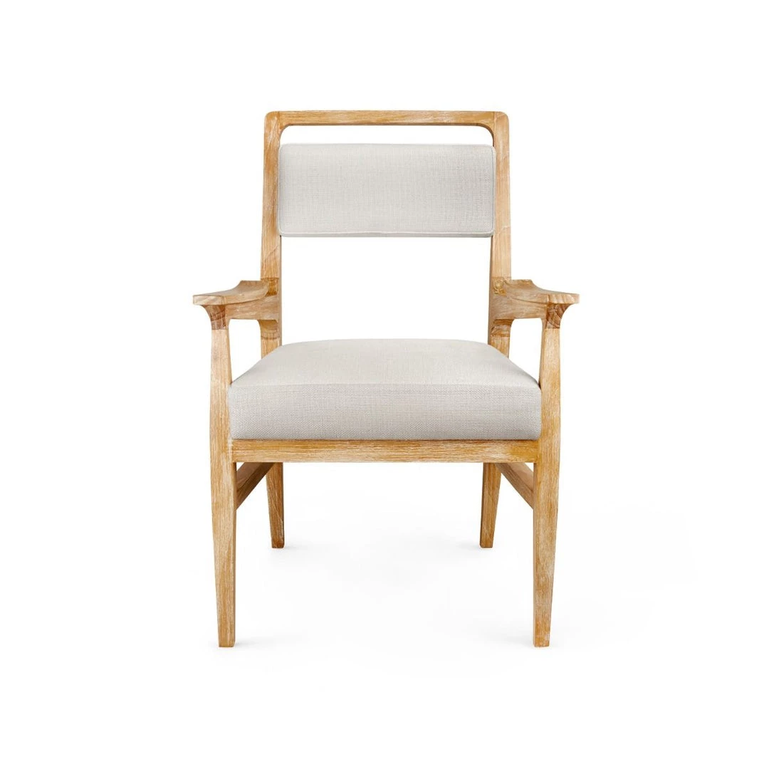 Constructed of Cape Lilac Mahogany, the James Chair has been painstakingly wire brushed and limed to bring out the beautiful natural grain of the wood. The design, derived from a French Modern piece, has been updated with proportions and sizing more suited to today. The result is a bold and stylishly geometric silhouette.
