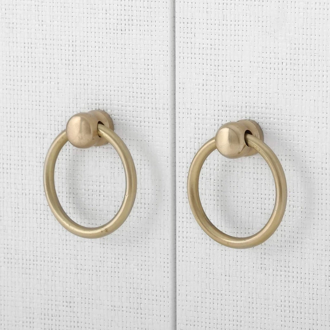 - Lacquered Grasscloth, Stained Interior with European Hinges, 2 Adjustable Shelves, Gold Finish Ring Pull. Cabinet includes back-panel openings to conceal and organize cables.