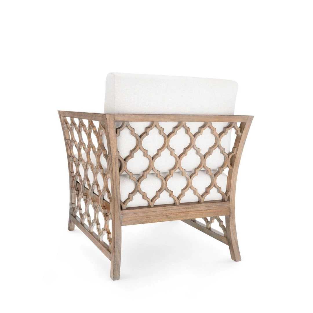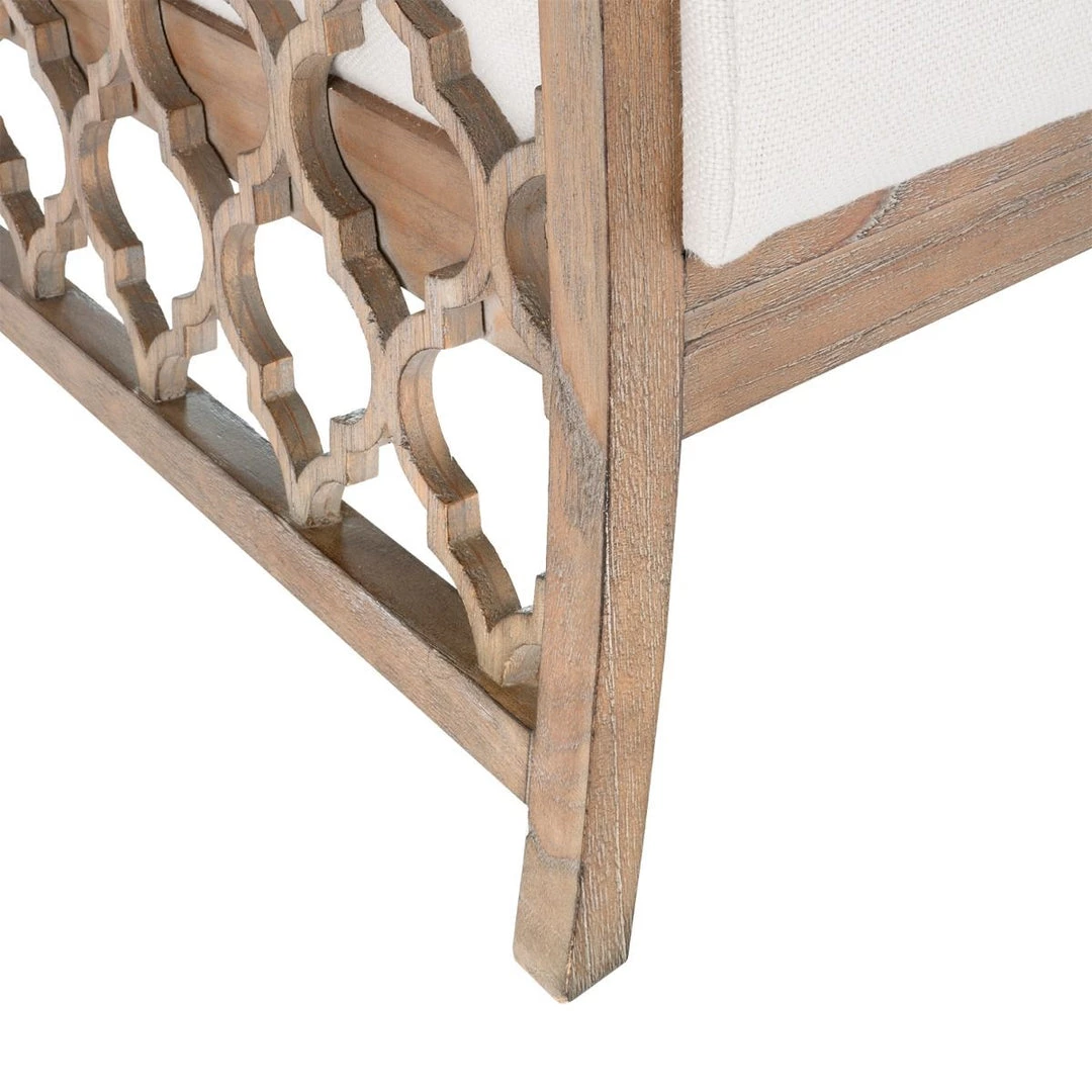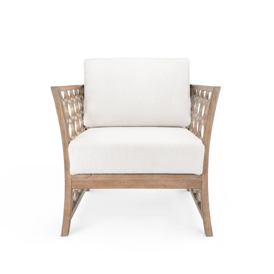 As with our other collections, the Parkan Club Chair is made of eco-friendly materials including farmed Cape Lilac Mahogany. Each piece is cut and assembled by hand then given a stylish and versatile driftwood wash. The open fretwork design and the wide-weave linen fabric of the seat and bolster work together to give the piece a poised informality.