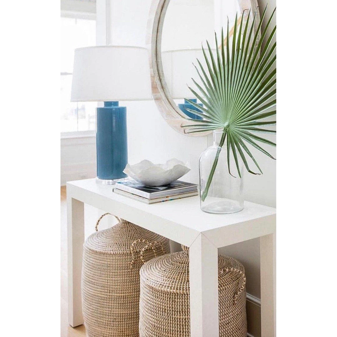 Crafted in textured grasscloth in the classic Parsons shape, this design combines architectural structure and natural elements to form one, striking piece.