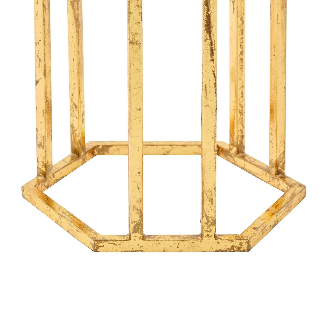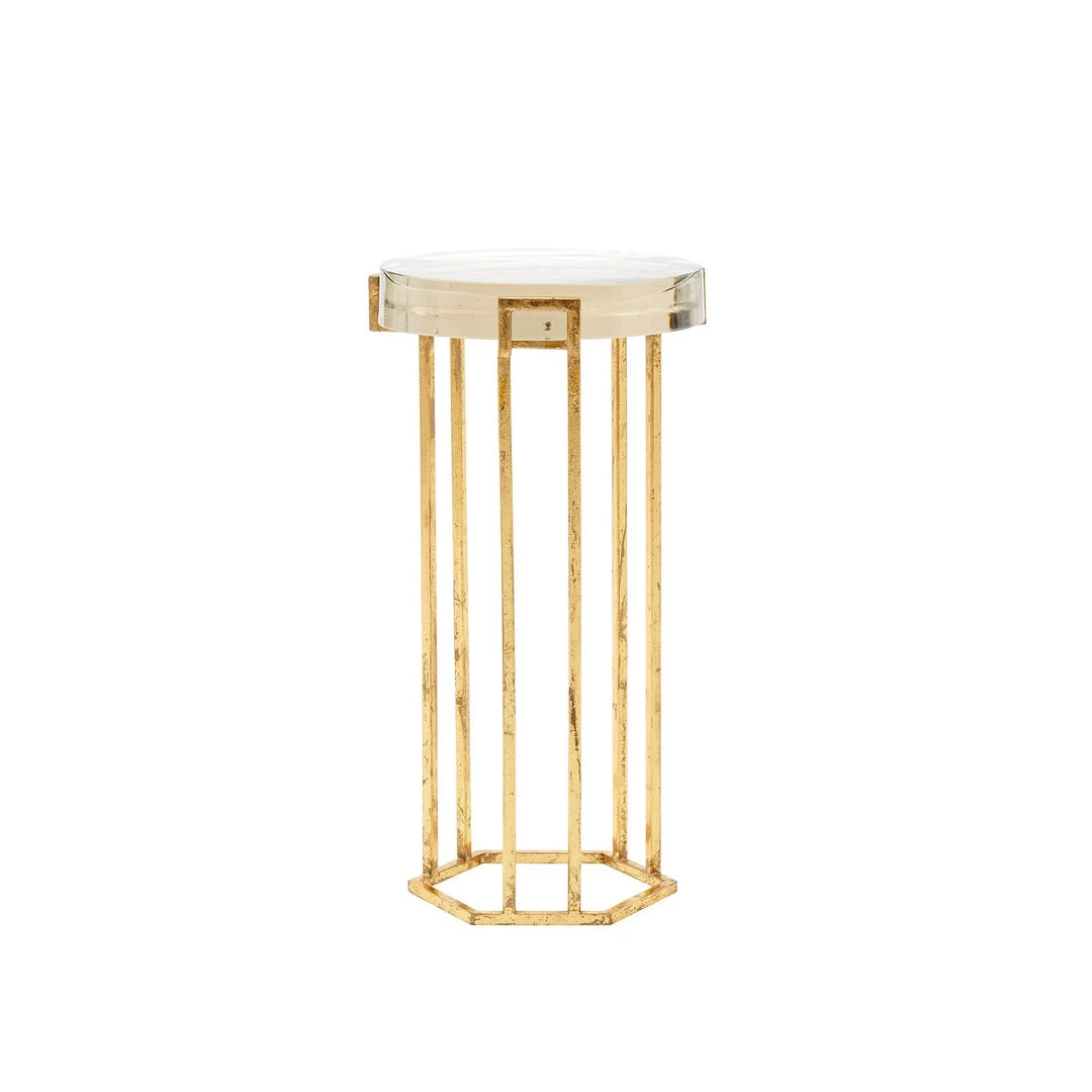 The two-piece Plano Side Table allows for endless experimentation. With a gilded, industrial glamour akin to 1920s Art Deco or the European Arts and Crafts movement, the Plano consists of bold planes and sleek geometries with a playfully creative edge. Each piece is rendered in iron, refined by gold leaf finishes, and topped with glass. The larger, cubic table is marked by thinner lines, which provide dynamic contrast to the smaller table’s thicker profile. When nested together, the pieces create an architectural, cagelike silhouette, though slight alterations in placement provide a range of impressions. Create a stepped surface area by pulling out the lower table, or separate them entirely and create a cohesive motif on either end of a sofa. For small spaces especially, the Plano is the perfect multi-use solution for when you need an extra drinks