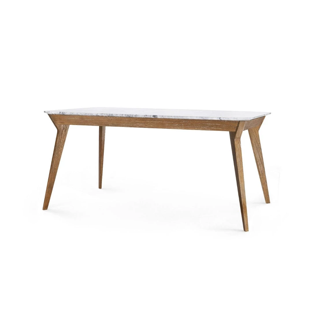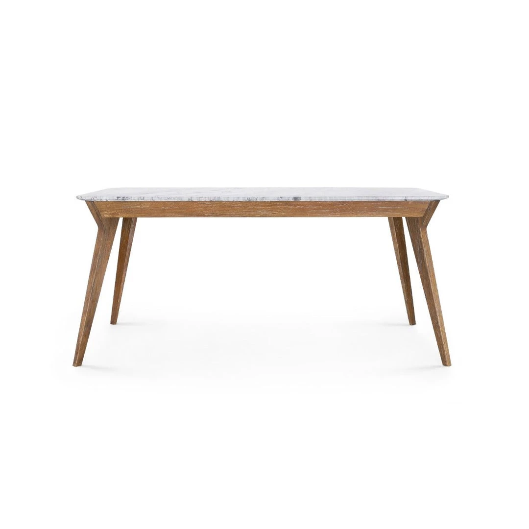 Finally, a dining table that reflects your unique tastes and signature style. At Bungalow 5, we take pride in crafting fashionable furnishings with fresh touches of luxury. From its retro-cool silhouette to its rich mixed materials, the Reed Dining Table perfectly exemplifies our philosophy. Influences of mid-century modern design can be found in the Reed’s sleek profile, marked by its angled and tapered legs. A finely-carved framework of Cape Lilac Mahogany meets the sumptuous swirls of Arabesco marble at its top, creating a sophisticated contrast between rustic charm and cosmopolitan chic. From dinner parties to leisurely breakfasts, the Reed effortlessly elevates every dining experience.