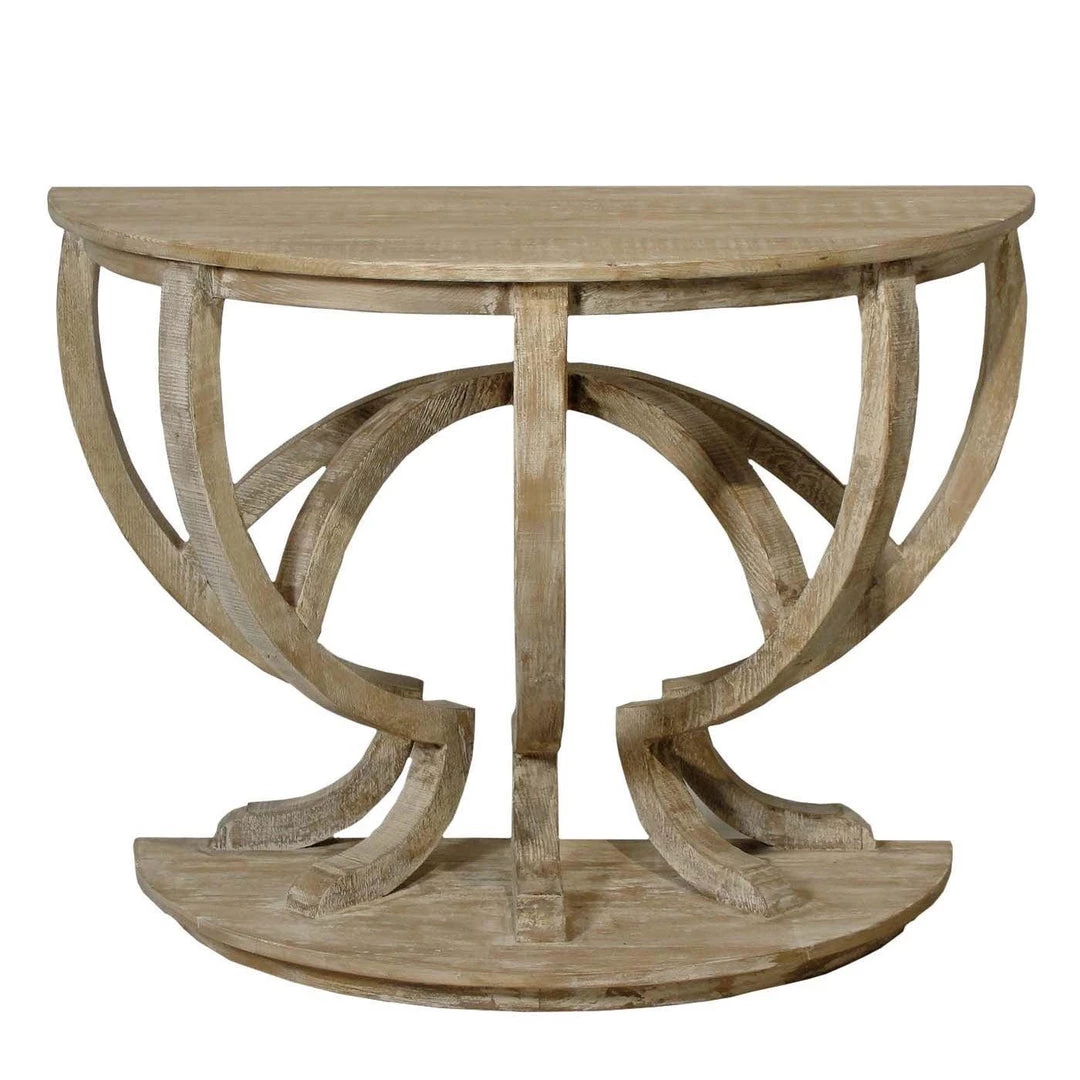| Finishes | Reclaimed Lumber Demi Lune Console, Black Wax, Grey Wash, Light Brown, Medium Brown, White Wash, Medium Antique |