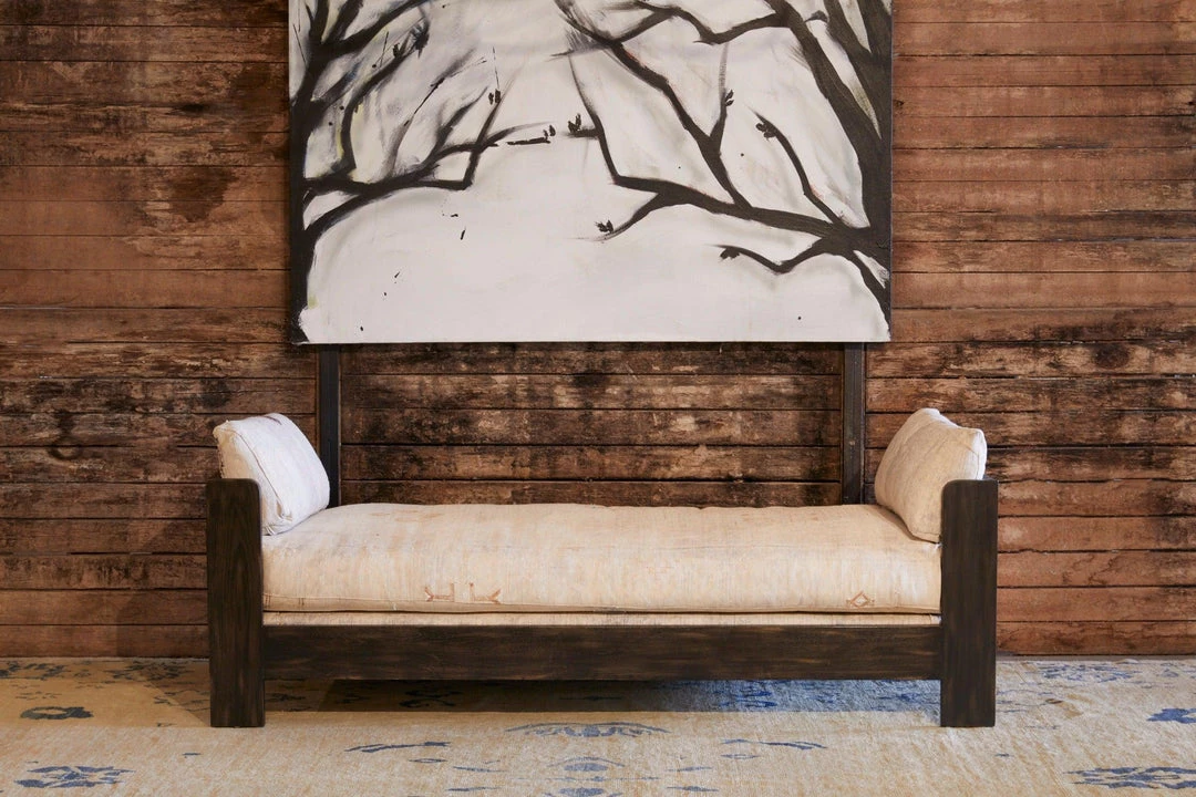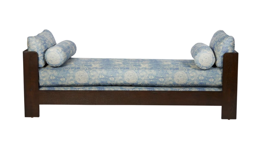 - Standards – Support: Webbing, Stitch: Top, Pillows: (2) 28×8 Bolster, Base: Carson, Seat: Bench