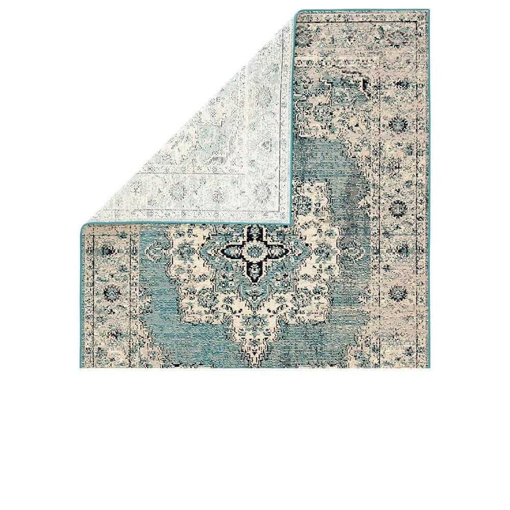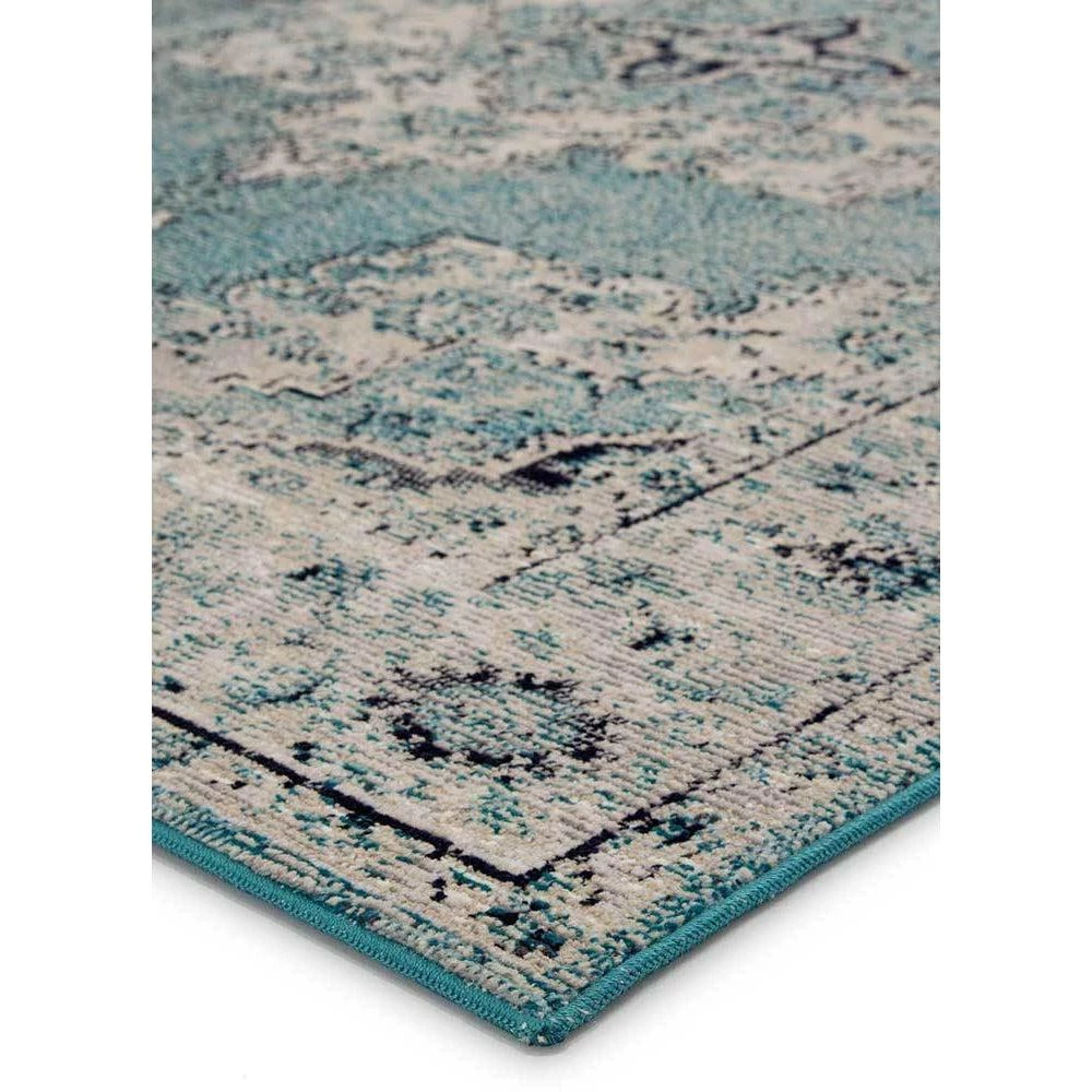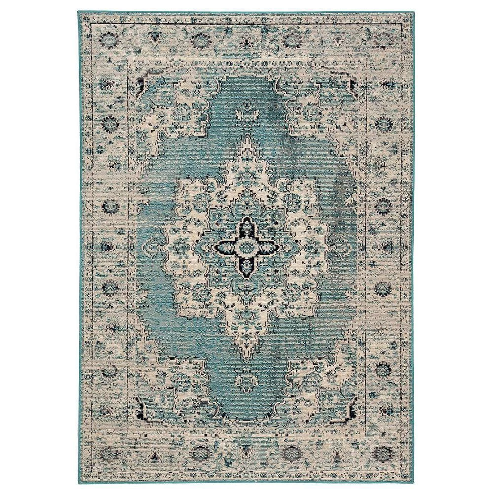 The power-loomed Peridot collection brings tradition alive by combining beautifully updated colorways with a remarkable handknot-inspired texture and look. Old World style takes a new turn–the Sontag area rug features a timeless medallion design in a balanced blend of turquoise, black, and off-white. Low-pile polypropylene offers durability and a stunningly soft feel to any space.