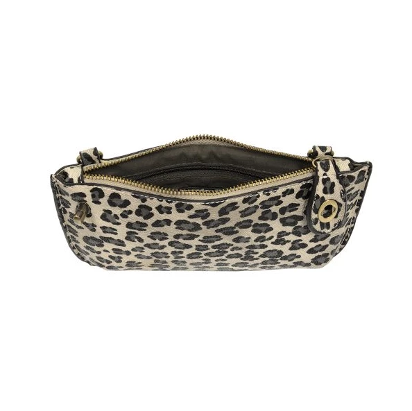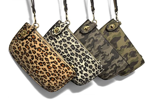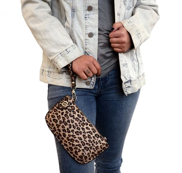 Looking for a wristlet that puts a new twist on chic? This leopard print crossbody bag from Joy Susan comes in natural or grey leopard print, which gives this vegan leather clutch an edgy urban style. Plus, removable straps let you wear this leopard print crossbody bag three different ways – as a wallet, wristlet, or crossbody clutch.