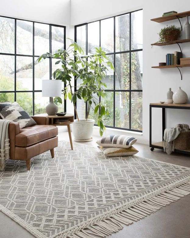 The Holloway Collection for Magnolia Home by Joanna Gaines and made by Loloi, brings warm neutrals to life with quality craftsmanship. Full of textural detail and finished with a generous fringe, Holloway features a blend of wool, cotton, and nylon.