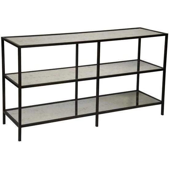 Be the first to review “Noir Furniture Noir 3 Tier Console W/ Antique Glass, Black Metal Finish” Cancel reply