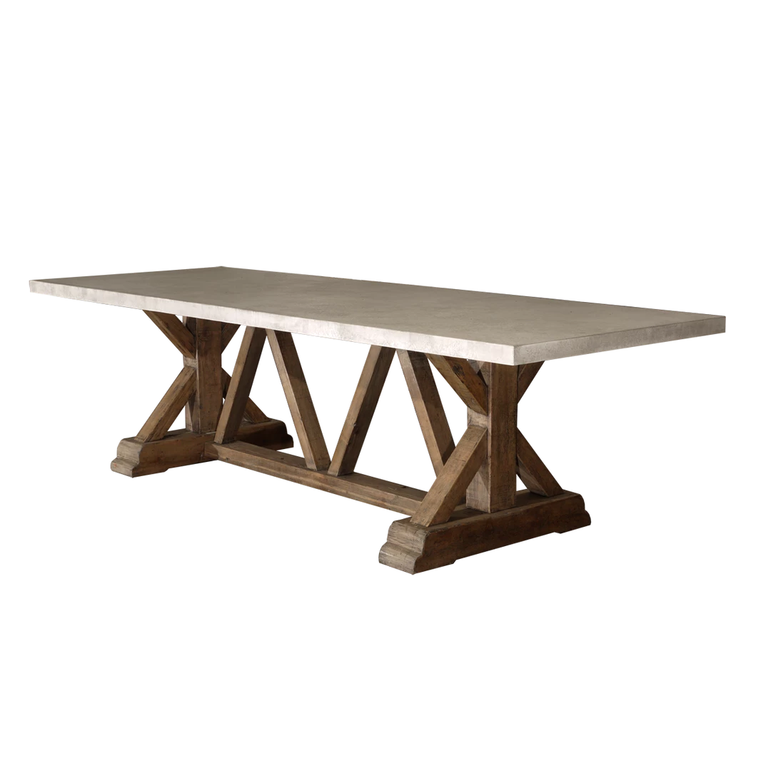 Organic Restoration Reclaimed Timber Trestle Table with Concrete Top – Large
