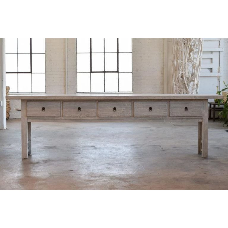 - Reclaimed elm tables are made using timbers salvaged from dismantled industrial buildings.