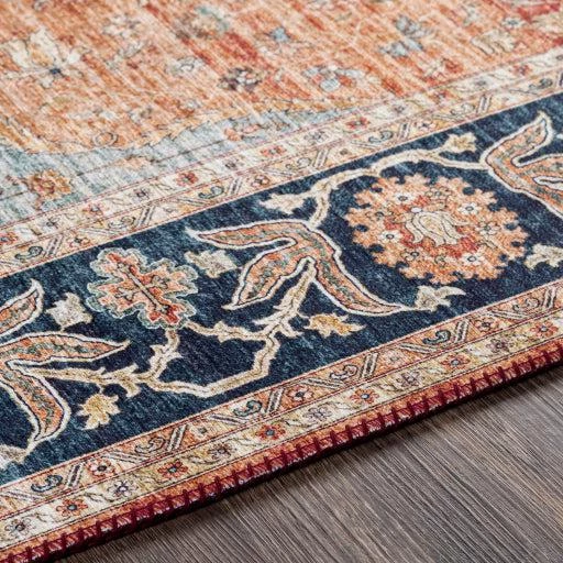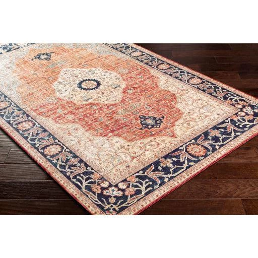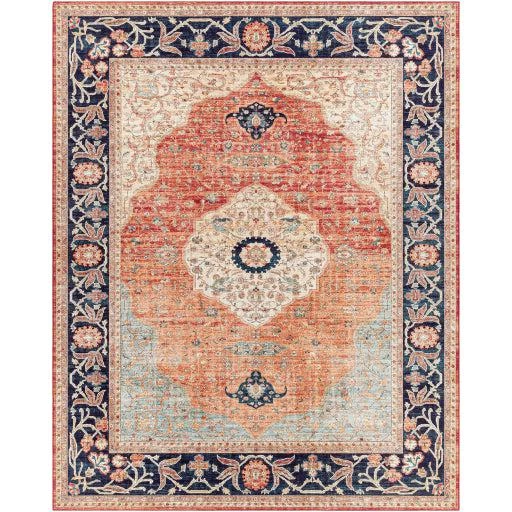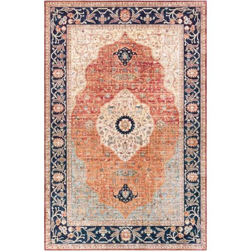 - Colors: Dark Blue, Light Blue, Burnt Orange, Light Beige, Cream